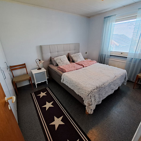 Fra slutningen af april/maj kan yderligere 2 soveværelser på overetagen klargøres, med adgang til eget toilet på gangen.Større soveværelse med balkon og dobbeltseng + plads til ekstra seng.